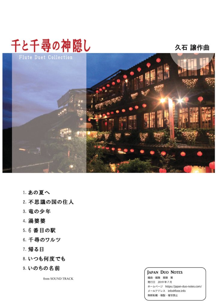 映画『千と千尋の神隠し』のサウンドトラックより採譜・編曲したフルート二重奏楽譜です。